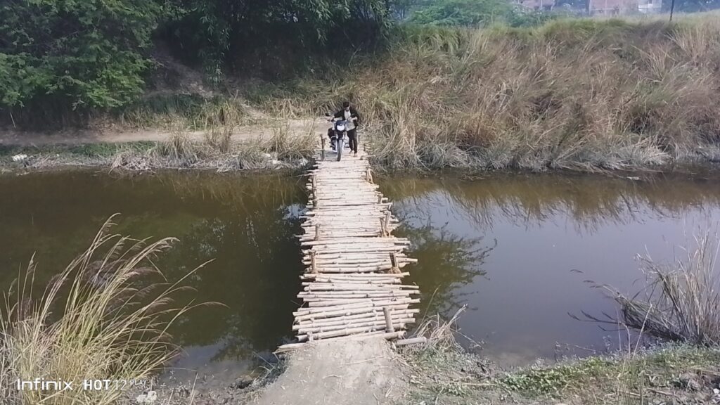 Jaunpur news बसुही नदी पर अस्थायी बांसपुल बना जोखिम, वर्षों से पक्का पुल की मांग कर रही हजारों की आबादी