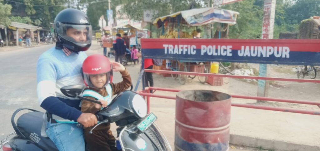 पूरे नवम्बर महीने में यातायात जागरूकता के लिए प्रशासन की ओर से कई कदम उठाए गए हैं।एक ओर इसे लेकर जागरूकता अभियान चलाया जा रहा है तो दूसरी ओर जनपद में यातायात नियमों को तोड़ने पर रिकॉर्ड स्तर पर चालान काटे जा रहे हैं। आज हम जनपद के एक ऐसे परिवार की चर्चा करके समाज को एक सकारात्मक संदेश देना चाह रहा है जहां पूरे परिवार के लिए चाहे वे छोटे बच्चे हों या महिलायें हों या पुरुष सभी के लिए अलग-अलग साइज के हाफ -फुल दर्जन भर हेलमेट मात्र इस मकसद से रखें गये हैं कि परिवार का कोई सदस्य बाइक और स्कूटर से सड़क पर जाये तो मौसम के अनुसार उसे हेलमेट जरुर उपलब्ध रहे इसका सकारात्मक परिणाम यह हुआ है कि सड़क पर हेलमेट पहनकर चलना इस परिवार के बड़ों को छोड़िए बच्चों के लिए शौक से कम नहीं है।इस परिवार के पांचों बच्चे शगुन, धैर्य,श्रीशा,साहस, श्रेष्ठ सभी आपको हेलमेट और हार्नेस बेल्ट लगाकर सड़क पर चलते दिख जायेंगे।नये मोटर वाहन अधिनियम के अनुसार चार वर्ष से अधिक उम्र के बच्चों के लिए हेलमेट अनिवार्य है और हार्नेस बेल्ट लगाना जरूरी है लेकिन नियम की बात अपनी जगह हेलमेट लगाना इस परिवार का हर सदस्य खुशी- खुशी अपनी जिम्मेदारी समझता है। चर्चा विकास खंड मछलीशहर के बामी गांव के जितेंद्र बहादुर सिंह के परिवार की जा रही है।इस परिवार में सदस्य तो ग्यारह हैं और हेलमेट बारह हैं। इसके पीछे का कारण बताते हुए जितेन्द्र बहादुर सिंह कहते हैं कि हेलमेट न पहनने के कारणों का अगर हम विश्लेषण करें तो इस निष्कर्ष पर पहुंचते कि जैसे हम लोग कपड़े, जूते, चप्पल अलग-अलग मौसम के अनुसार अलग-अलग पहनना उचित समझते हैं वैसे ही मौसम और उम्र के अनुसार अगर अलग-अलग साइज के और बनावट के अनुसार अलग-अलग प्रकार के हेलमेट रखें हों तो हर कोई इन्हें पहना पसंद करेगा, आखिर हम लोग कपड़ों,गहनों, जूतों पर इतना भारी भरकम पैसा लगाते हैं उनकी तुलना में दर्जन भर हेलमेट खदीने और स्टैंड पर पन्द्रह से बीस हजार के बीच खर्च आयेगा जो बहुत ज्यादा नहीं है बस हमारी सोच कपड़ों, गहनों और जूतों चप्पल तक ही खर्च करने तक सीमित रही है।यह बोझ भी नहीं है यू के जी में पढ़ने वाला मेरे नाती साहस को हेलमेट और हार्नेस बेल्ट लगाकर चलने में ऐसी ही खुशी मिलती है जैसे खिलौनों से खेलने में मिलती है।यह पूछे जाने पर कि लीक से हटकर ऐसा काम करने का उनके मन में विचार कहा से आया तो इसके बारे में वह बताते हुए कहते हैं कि उन्होंने गडकरी जी का सदन में जबाब देते एक वीडियो देखा जिसमें वह कह रहे थे कि कई देशों ने एक्सीडेंट और उससे होने वाली मृत्यु को शून्य कर लिया है लेकिन इस मामले में उनके देश का रिकार्ड सबसे गंदा है जब वह वर्ल्ड लेवल की किसी कान्फ्रेंस में जाते हैं तो उन्हें मुंह छुपाना पड़ता है, उन्हो