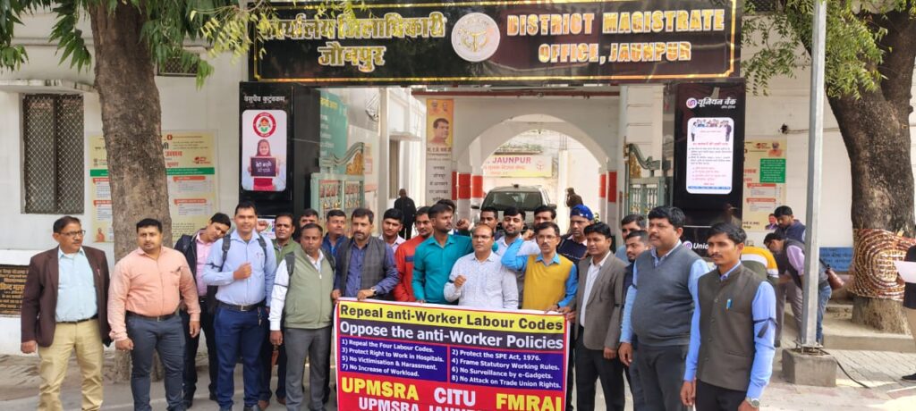Jaunpur news श्रम संहिताओं और SPE एक्ट समाप्ति के विरोध में UPMSRA जौनपुर का प्रदर्शन, प्रधानमंत्री को सौंपा ज्ञापन