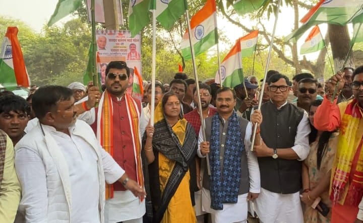 यात्रा में बड़ी संख्या में भाजपा कार्यकर्ता, स्थानीय नागरिक, छात्र एवं व्यापारी शामिल हुए।