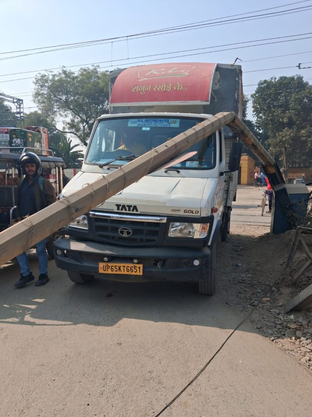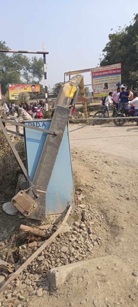 पिकअप की टक्कर से रेलवे क्रॉसिंग का बूम उखड़ा, कई घंटे बाधित रहा यातायात