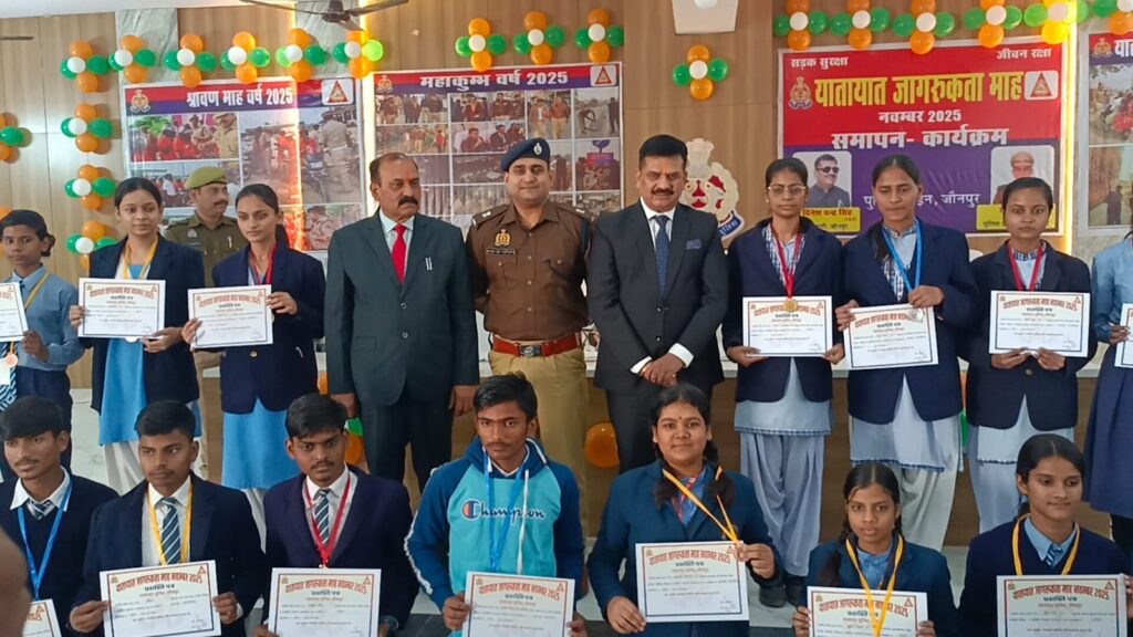 Jaunpur news यातायात माह जागरूकता अभियान का हुआ समापन, उत्कृष्ट योगदान देने वाले विद्यालयों व पुलिसकर्मियों को किया गया सम्मानित