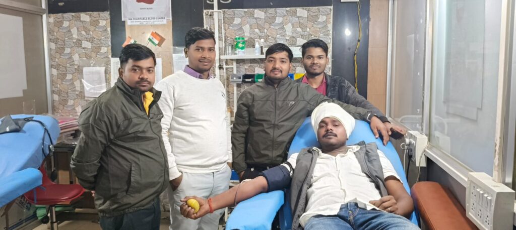Jaunpur news आई एम ए चेरिटेबल ब्लड बैंक में ब्लड डोनेट करके नरेंद्र शर्मा ने कैंसर पीड़ित की बचाई जान