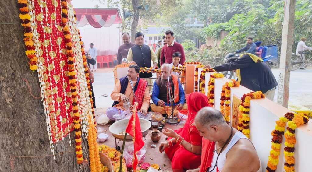 Jaunpur news अहमदपुर में चौरा माता के नवनिर्मित चबूतरे की प्राण-प्रतिष्ठा, भंडारे में उमड़ा श्रद्धालुओं का सैलाब