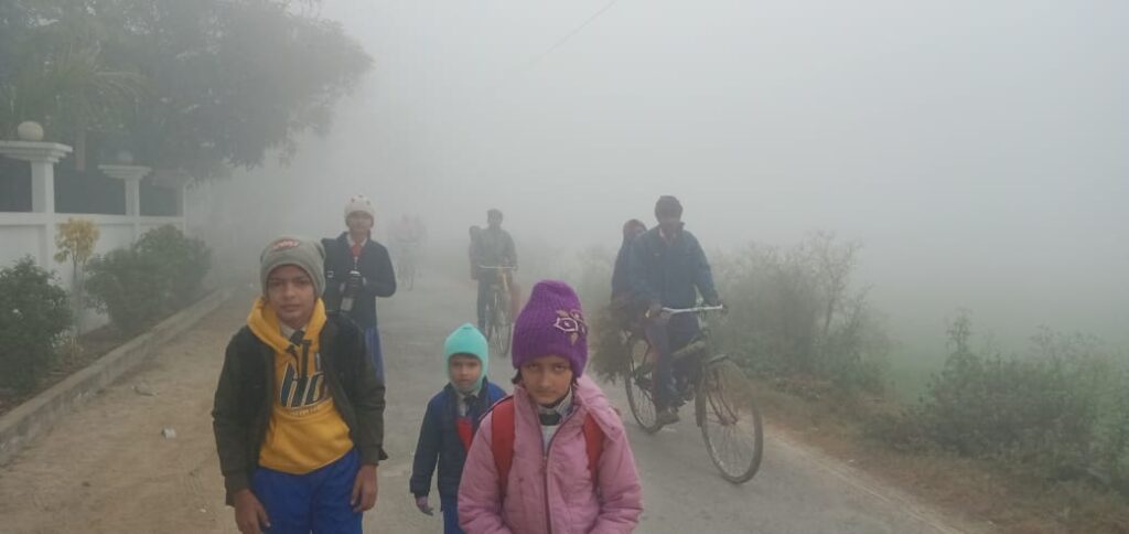 Jaunpur news घने कोहरे और गलन के बीच बच्चे गये स्कूल: