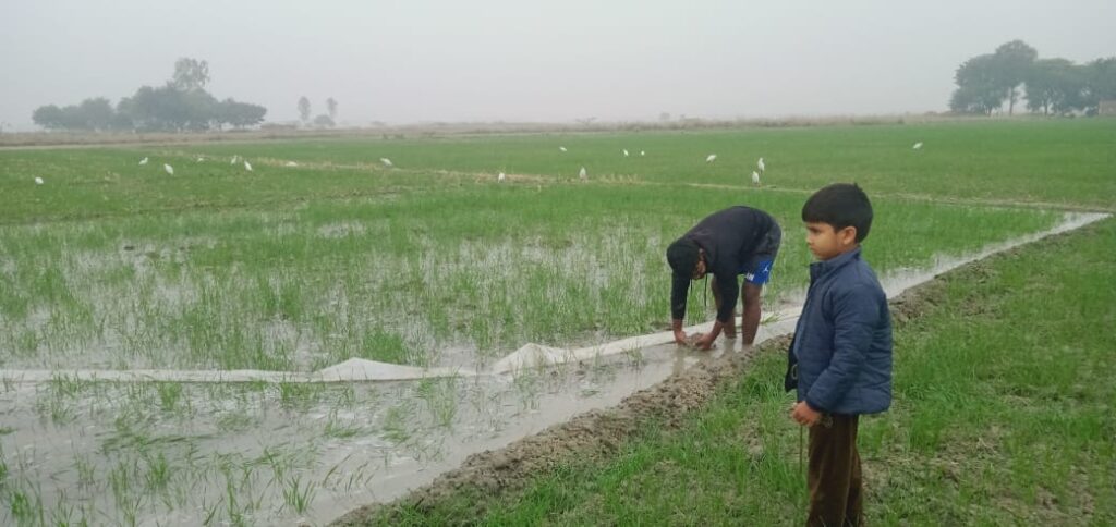 ठंड और गलन के बीच गेहूं की पहली सिंचाई में जुटे किसान