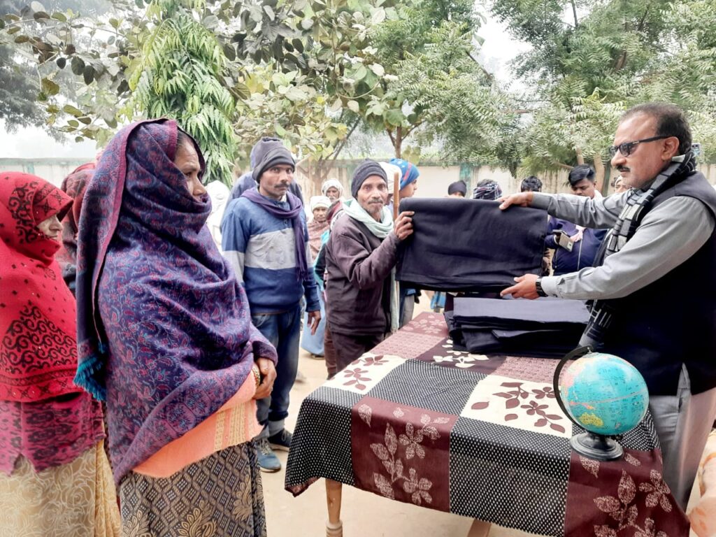 ग्रामीणों को वितरित किए ढाई सौ कंबल