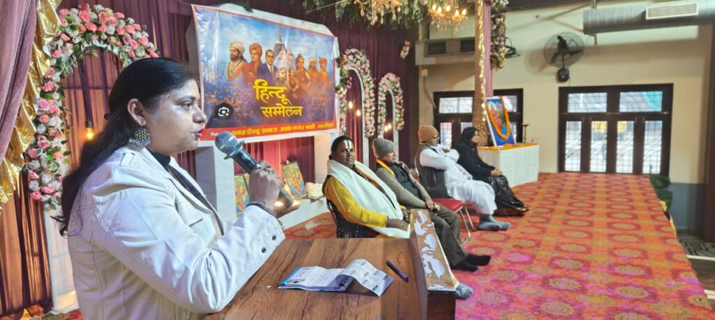 वह मंगलवार को नगर के एक पैलेस में आयोजित विशाल हिंदू सम्मेलन में मुख्य वक्ता के रूप में बोल रही थी। उन्होंने कहा कि कोई भी परिवार समाज की सबसे मजबूत कड़ी होती है। मां परिवार को संगठित और अनुशासित करने के लिए सबसे मजबूत कड़ी के रूप में साबित होती है । अगर परिवार एक हो तो यह समाज को मजबूती मिलेगी। समाज टूटता नहीं है, ऐसे ही भारत की एकता अखंडता के लिए हिंदू समाज का एकजुट होना नितांत आवश्यक है।