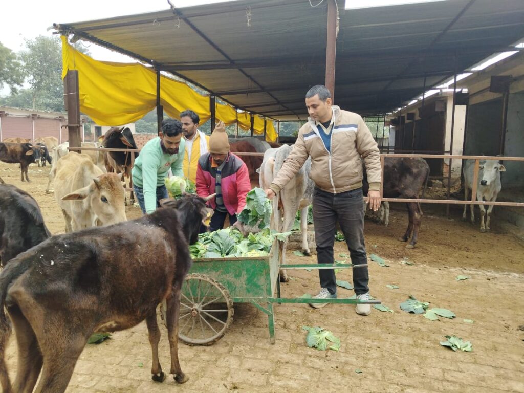 पौष पूर्णिमा स्नान पर्व पर गोवंश को खिलाया गया चारा