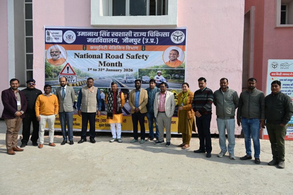 जौनपुर। उमानाथ सिंह स्वशासी राज्य चिकित्सा महाविद्यालय में गुरुवार को राष्ट्रीय सड़क सुरक्षा माह का शुभारंभ किया गया। यहां मुख्य अतिथि के रूप में उपस्थित भाजपा जिलाध्यक्ष अजीत कुमार प्रजापति ने कहा कि एक सावधानी से वाहन चालक की जान बच सकती है। घर से निकलने से पहले हम सीट बेल्ट, हेलमेट का प्रयोग अवश्य करें।