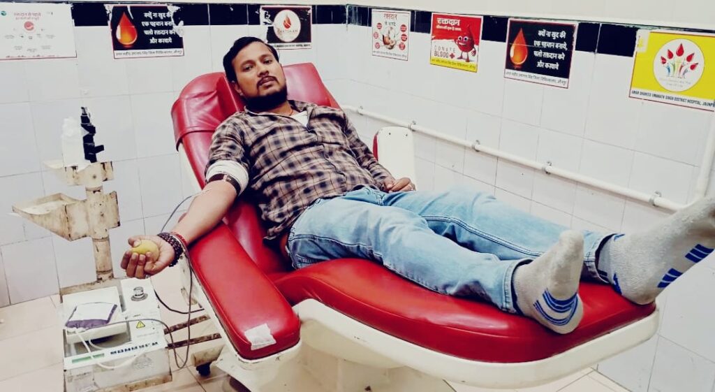 जौनपुर : आधी रात को मसीहा बनकर जिला अस्पताल पहुँचे समाजसेवी अतुल तिवारी, किया रक्तदान