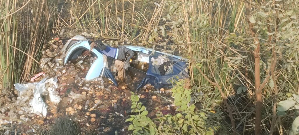 हाईस्पीड डम्फर की टक्कर से ऑटो नाले में गिरा, बुजुर्ग की मौत, दो घायल
