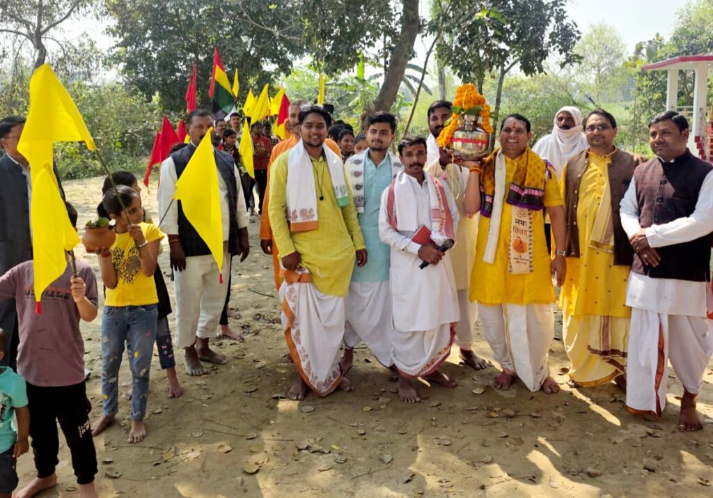 बता दें कि धिरौली नानकार गांव स्थित प्राचीन बाबा बान्हदैत्य मंदिर पर महा रूद्र का आयोजन मुख्य यजमान वरिष्ठ सपा नेता डॉ सुर्यभान यादव ने किया । डा.सूर्यभान के नेतृत्व में 108 कन्याओं के हाथों में धर्म पताका और कलश यात्रा को लेकर गांव का भ्रमण किया। डॉ सूर्यभान यादव ने सर पर कलश रखकर धर्म संस्कार सनातन समरसता सामज्सय आपसी सद्भभाव का संदेश दिया। इस दौरान पं. वशिष्ट नारायण चतुर्वेदी ,पं . शिवकुमार त्रिपाठी ने वैदिक रीति रिवाज मंत्रोचार कर कलस का पूजन किया , इस मौके पर डॉ सूर्यभान यादव ने कहा कि कलश उस महाशक्ति का प्रतीक है जो पूरी सृष्टि का पालक और संचालक है ,यात्रा में शामिल होने के लिए होने से कई तीर्थ के बराबर का फल मिल जाता है। कलश यात्रा के साथ महायज्ञ श्री रुद्र महायज्ञ का शुभारंभ किया गया और बेदी पूजन तथा कथा के बाद सामूहिक रुद्राभिषेक किया गया। इस अवसर पर भारी संख्या में लोगों ने कलश यात्रा में शामिल हुए और लोगों ने अपने-अपने श्रद्धा पूर्वक यात्रा सहयोग किया। इसके बाद श्री रूद्र यज्ञ के बाद एक मार्च रविवार को भंडारा एवं प्रसाद वितरण आयोजित किया गया है ।जिसमें काफी संख्या में लोग शामिल होंगे । इस अवसर पर बिरहा सम्राट विजयलाल यादव के कार्यक्रम का भी आयोजन किया गया है। इस मौके पर प्रो. राकेश कुमार यादव ,सपा प्रवक्ता राकेश यादव ,भीम यादव, जितेंद्र यादव अनूप मिश्रा ,ज्ञान प्रकाश पांडे, विजय यादव ,आदित्य ,गुलाब, संतोष यादव रमेश तिवारी, मौजूद रहे ।