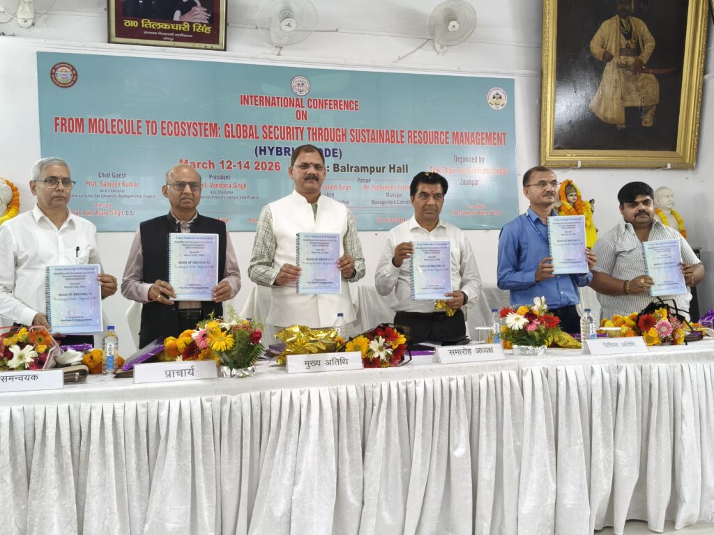जौनपुर। तिलकधारी स्नातकोत्तर महाविद्यालय, जौनपुर के ऐतिहासिक बलरामपुर हाल में आज दिनांक 12 मार्च 2026 (गुरुवार) से तीन दिवसीय अंतर्राष्ट्रीय संगोष्ठी का शुभारंभ हुआ। संगोष्ठी का विषय “अणु से पारिस्थितिकी तंत्र तक: स्थायी संसाधन प्रबंधन के माध्यम से वैश्विक सुरक्षा” रखा गया है।