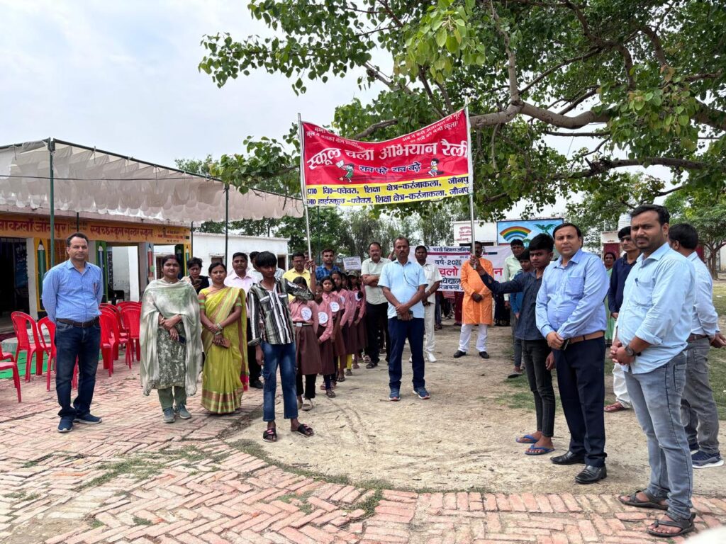 स्कूल चलो अभियान की रैली निकालकर बच्चों का नामांकन कराकर स्कूल भेजने के लिए किया गया प्रेरित।