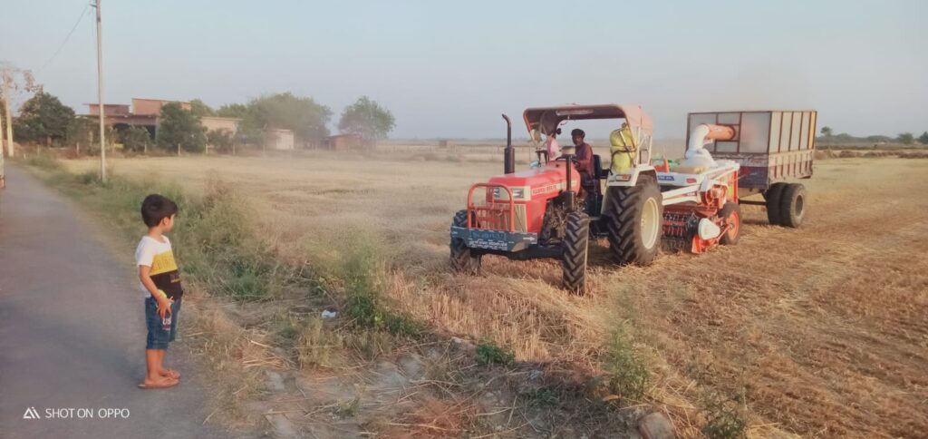 Jaunpur news मौसम अच्छा होने से ग्रामीण इलाकों में गेहूं की कटाई-मड़ाई जोरों पर