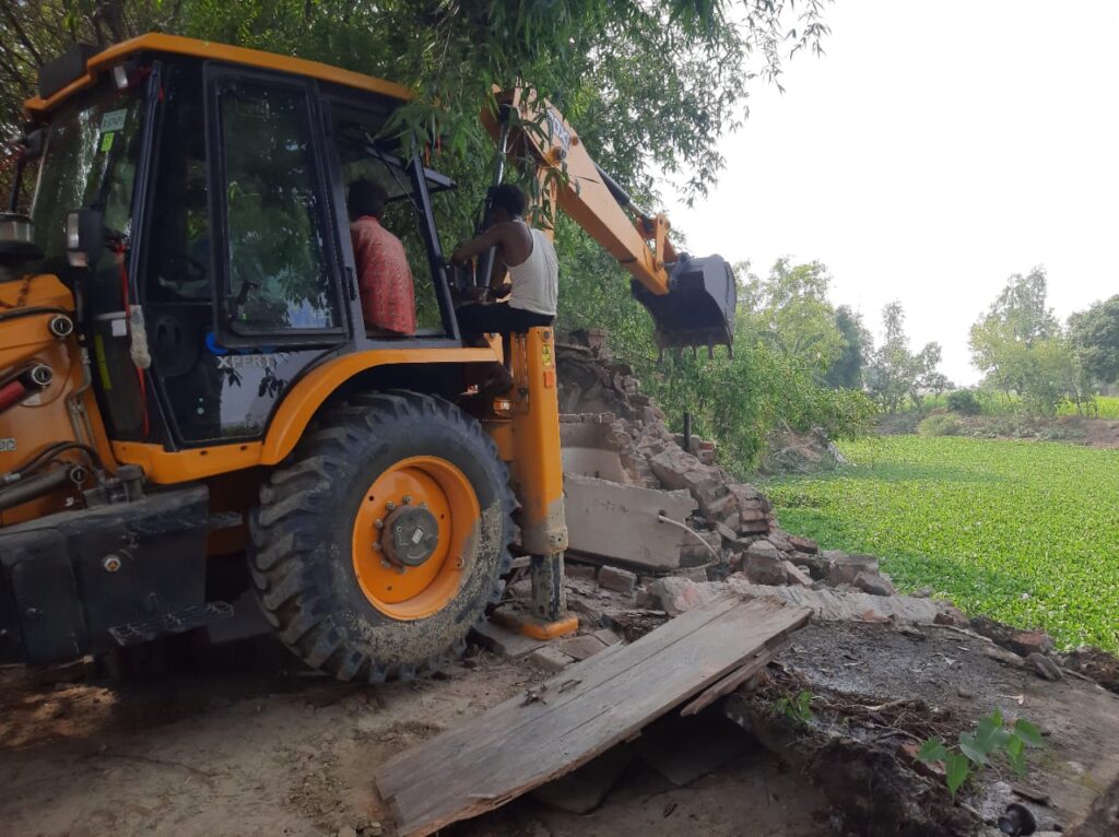 अवैध जमीन पर बने मकान पर जिला प्रशासन का चला बुलडोजर
