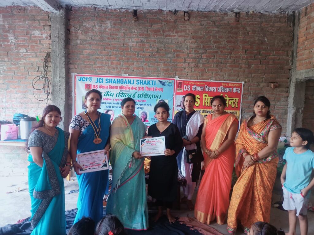 शाहगंज में 15 दिनों से चल रहे निशुल्क कौशल विकास प्रशिक्षण शिविर समर कैंप का बुधवार को समापन हो गया । इस शिविर में बालिकाओं और युवतियों को सिलाई – कढ़ाई का निशुल्क प्रशिक्षण दिया गया । महिला उद्यमियों की संस्था जेसीआई शाहगंज शक्ति और नगर के प्रसिद्ध संस्थान डीएस कौशल विकास प्रशिक्षण केंद्र की शाखा डीएस सिलाई कढ़ाई प्रशिक्षण केंद्र द्वारा आयोजित समर कैंप के भव्य समापन समारोह में नगर पालिका अध्यक्ष गीता जायसवाल ने सभी प्रतिभागियों को उपहार और प्रमाण पत्र देकर सम्मानित किया ।