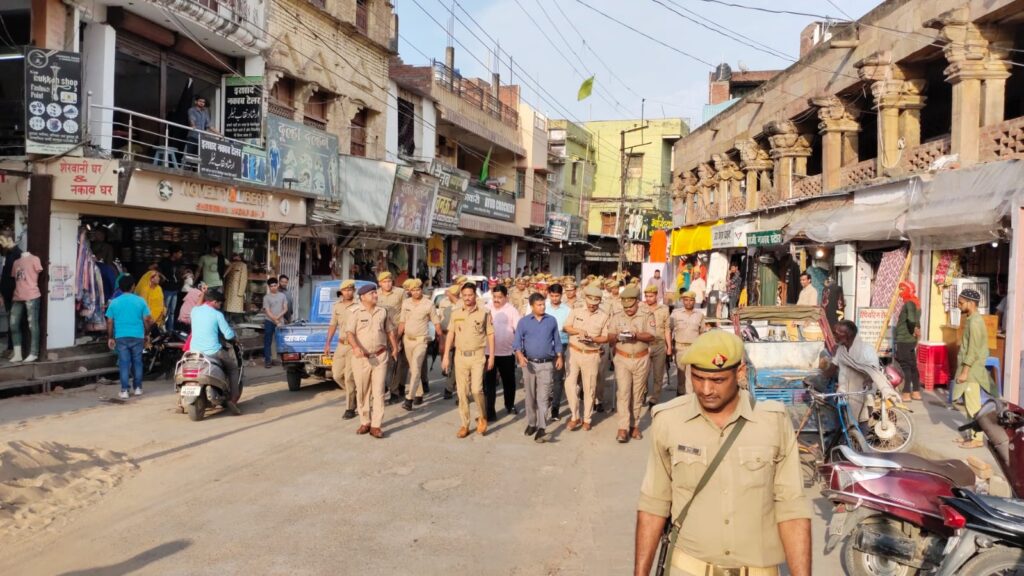 डीएम व एसपी ने पूरे शहर में निकाला फ्लैग मार्च