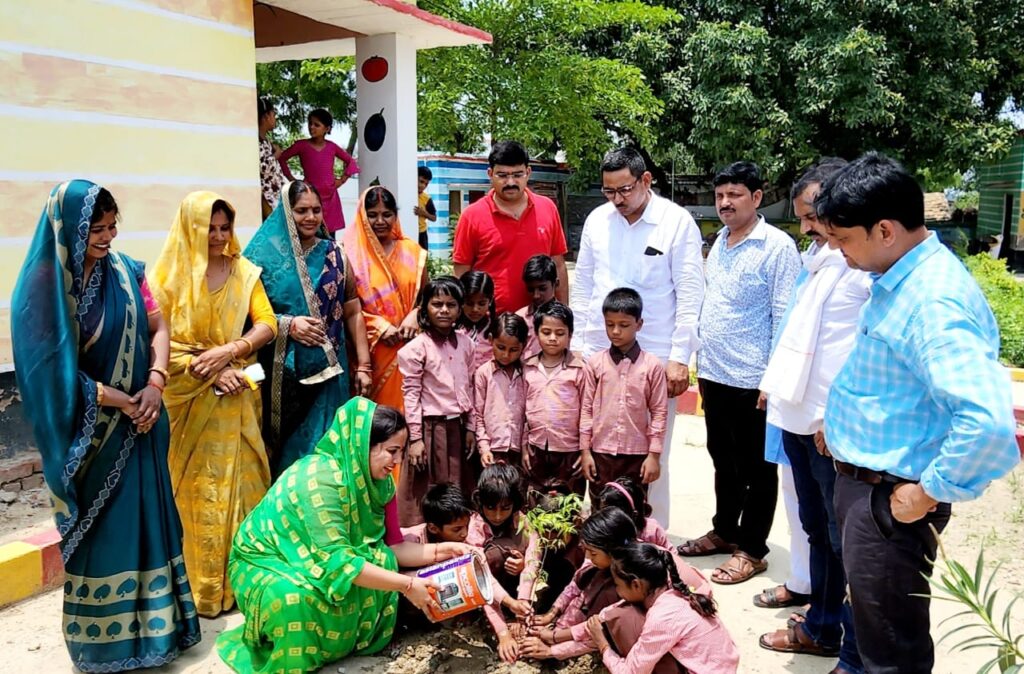 विद्यालय के बच्चों द्वारा शुरु कराया गया पौधरोपण अभियान