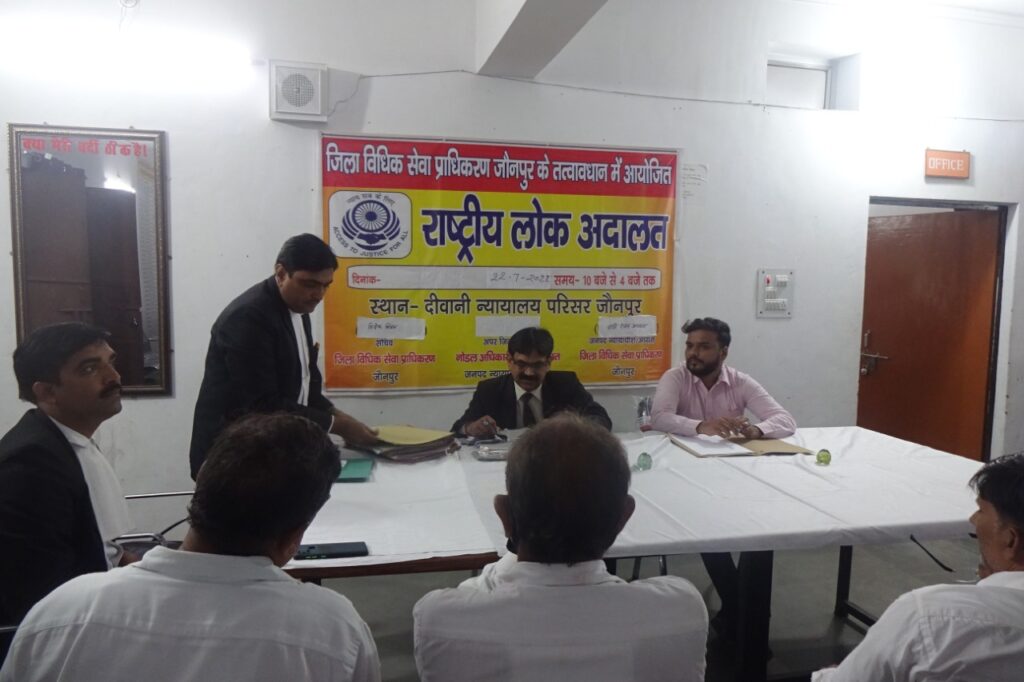 जौनपुर उ0प्र0 राज्य विधिक सेवा प्राधिकरण लखनऊ के निर्देशानुसार एवं माननीय जनपद न्यायाधीश/अध्यक्ष, जिला विधिक सेवा प्राधिकरण, जौनपुर श्रीमती वाणी रंजन अग्रवाल के कुशल निर्देशन में 13 अगस्त 2022 को प्रस्तावित राष्ट्रीय लोक अदालत में मोटर दुर्घटना दावा प्रतिकर के अधिकतम वादों के निस्तारण के सम्बन्ध में अधिवक्तागण से विचार विमर्श हेतु प्री-ट्रायल बैठक श्री भुदेव गौतम, पीठासीन अधिकारी मोटर दुर्घटना दावा अधिकरण जौनपुर की अध्यक्षता एवं श्री विवेक विक्रम सचिव पूर्णकालिक, जिला विधिक सेवा प्राधिकरण, जौनपुर के संयोजन में 22 जुलाई 2022 को न्यायालय/कार्यालय मोटर दुर्घटना दावा अधिकरण जौनपुर में समय दोपहर 2ः30 बजे आयोजित की गयी।