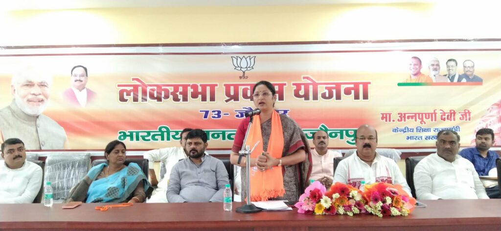 जौनपुर: भाजपा अभी से 2024 आम चुनाव की तैयारियों में जुट गयी है इस कड़ी में केन्द्रीय मानव संसाधन राज्य मंत्री अन्नपूर्णा देवी यादव जौनपुर भाजपा कार्यालय पहुँची जिनका बीच बीच मे कार्यकर्ताओ द्वारा भव्य स्वागत हुआ। जिलाध्यक्ष पुष्पराज सिंह ने पुष्प गुच्छ और स्मृति चिन्ह देकर स्वागत किया
