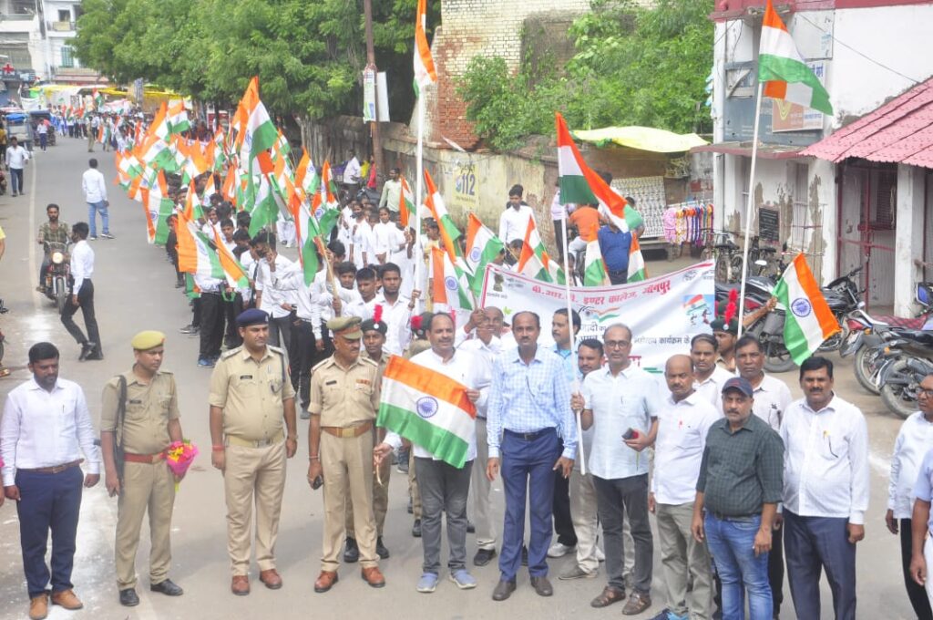 रैली को अपर जिलाधिकारी भू-राजस्व रजनीश राय ने हरी झण्डी दिखाकर रवाना किया, रैली में आगे आगे माइक पर देशभक्ति तराना व गीत बजता चल रहा था तथा हजारों छात्र-छात्राएं, शिक्षक, अधिकारी तिरंगा झंडा लिए नारा लगाते चल रहे थे और लोगों को हर घर तिरंगा फैहराने के लिए जागरुक व प्रेरित कर रहे थे, तिरंगा रैली रोडवेज तिराहा, ओलंदगंज, शाही पुल, चहारसू चौराहा, कोतवाली चौराहा होते हुए नगर पालिका परिषद मैदान तक गई।
