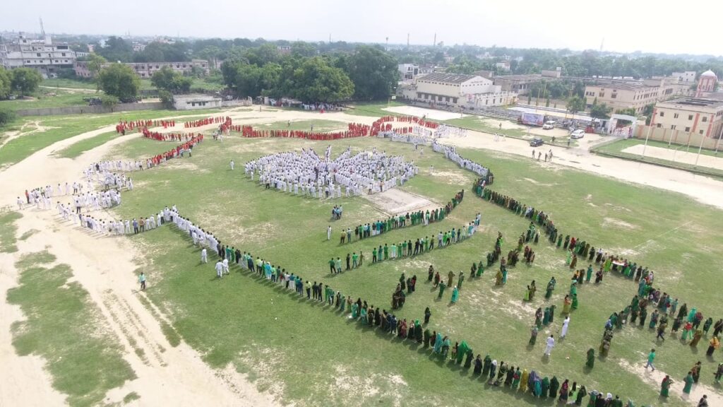 आजादी के अमृत महोत्सव के अंतर्गत हर घर तिरंगा कार्यक्रम के पहले दिन तिलकधारी सिंह पी.जी कालेज के मैदान में जनपद के सभी विकास खंडों से लगभग 3000 अध्यापकों द्वारा भारत के नक्शे के आकार की मानव श्रृंखला बनाई गई , जिसके लिए समस्त अध्यापकों ने तिरंगे के रंग का ड्रेस पहनकर इस मानव श्रृंखला को सफल बनाने में अपना योगदान दिया तथा इस कार्यक्रम को सफल बनाने में खंड शिक्षा अधिकारी व एस.आर. जी. व ए. आर. पी. द्वारा पूरी तन्मयता से अपना योगदान किया । जनपद के सभी शिक्षक संगठन द्वारा भी कार्यक्रम में बढ़ चढ़कर हिस्सा लिया गया ।