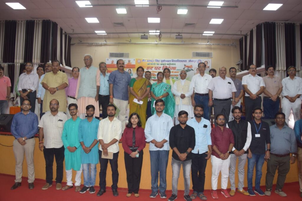 अतिथियों का स्वागत हर घर तिरंगा के नोडल अधिकारी डॉ मनोज मिश्र ने एवं आभार प्रो अजय प्रताप सिंह ने व्यक्त किया। इस अवसर अपर पुलिस अधीक्षक जितेंद्र दुबे, कुलसचिव महेंद्र कुमार, वित्त अधिकारी संजय कुमार राय, परीक्षा नियंत्रक वी एन सिंह, प्रो बीबी तिवारी,एनएसएस समन्वयक डॉ राकेश कुमार यादव, प्रो वंदना राय, प्रो अजय द्विवेदी, प्रो राजेश शर्मा, प्रो. अशोक श्रीवास्तव, प्रो संदीप सिंह, प्रो. देवराज सिंह, प्रो. रजनीश भास्कर, प्रो नूपुर तिवारी, डॉ प्रमोद यादव, डॉ. रसिकेश, डॉ. गिरिधर मिश्र, डॉ. दिग्विजय सिंह राठौर, डॉ अमरेंद्र सिंह, ए आर अजीत सिंह, श्रीमती बबिता सिंह, अमृतलाल, दीपक सिंह, शशिकांत यादव, डॉ. विनय वर्मा, डॉ. पुनीत धवन, डॉ. नितेश जायसवाल, डॉ. अवध बिहारी सिंह, डॉ. चंदन सिंह समेत विद्यार्थी एवं शिक्षक उपस्थित रहे।