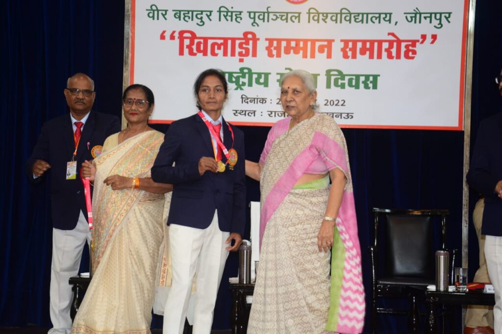 जौनपुर। वीर बहादुर सिंह पूर्वांचल विश्वविद्यालय जौनपुर के मेडल प्राप्त विजेता 121 खिलाड़ियों को 29 अगस्त सोमवार को राजभवन लखनऊ के गांधी सभागार में सम्मानित किया गया।