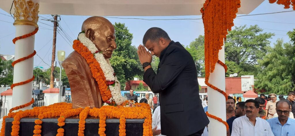 जिलाधकारी ने द्वारा गांधी तिराहे पर महात्मा गांधी जी के प्रतिमा पर माल्यार्पण किया गया और खादी विभाग द्वारा लगाया गया चरखा को चलाया और कहा कि खादी को जीवन में महत्व दे।