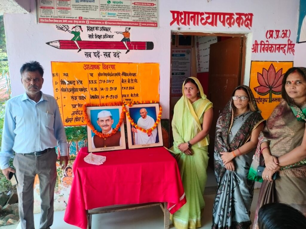 विद्यालय पर 2 अक्टूबर गांधी जयंती हर विद्यालय पर जिलाधिकारी के आदेश अनुसार महात्मा गांधी व लाल बहादुर शास्त्री जी के फोटो रखकर सभी विद्यालय पर अर्पित करते हुए उनका सम्मान किया जा रहा है प्राथमिक विद्यालय के प्रधानाध्यापक विवेकानंद सिंह ने बताया कि आज 2 अक्टूबर को हर विद्यालय पर गांधी जयंती मनाया जा रहा है. और उन्होंने तीन बातें भी बताएं जिसमें हमें एहसास है कि हमारे देश में विशेष रूप से युवाओं के बीच नशीली दवाओं का दुरुपयोग बढ़ता जा रहा है और यह चिंता का विषय है हम शपथ लेते हैं कि हम नशीली दवाओं के दुरुपयोग के रोकथाम में सहयोग करेंगे हम यह वचन देते हैं कि किसी भी प्रयोजन के लिए किसी प्रकार से हानिकारक अथवा अवैध पदार्थों का सेवन नहीं करेंगे। और हम प्रत्येक व्यक्ति विशेषत: युवाओं को प्रोत्साहित करते हुए नशीली दवाओं के दुष्प्रभाव के संबंध जागरूकता पैदा करेंगे ताकि भारत का युवा वर्ग नशा मुक्त जीवन यापन कर सकें वे समाज के रचनात्मक एवं महत्वपूर्ण सदस्य बन सके। आज हम प्रतिज्ञा करते हैं कि नशे से दूर रहेंगे और स्वस्थ जीवन यापन करेंगे। जिसमें विद्यालय के स्टाफ प्रज्ञा सिंह, सीमा देवी जावेद खान, संजू यादव व छात्र-छात्रा सहित लोग उपस्थित रहे।