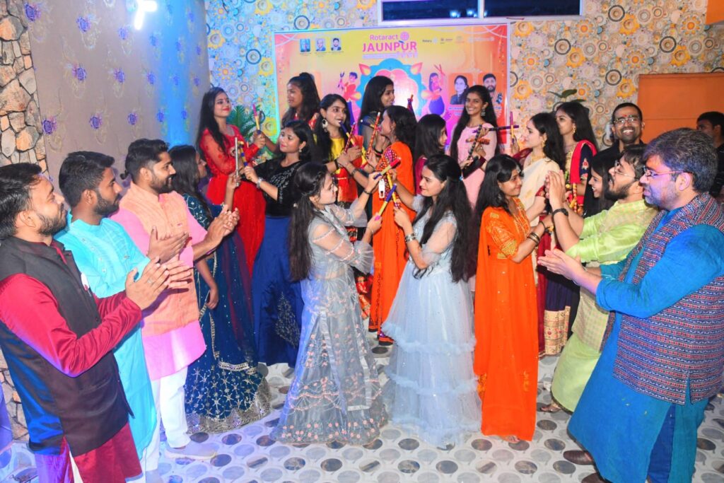 मातृशक्तियों को समर्पित पवित्र पर्व नवरात्रि की सप्तमी तिथि की संध्या पर रोट्रैक्ट क्लब, जौनपुर द्वारा सांस्कृतिक मूल्यों को समाज में प्रचारित- प्रसारित करने एवं युवाओं को अपने सांस्कृतिक विरासत से परिचित कराने के उद्देश्य से डांडिया ऐंड म्यूजिकल नाइट का आयोजन रोडवेज बस स्टॉप स्थित होटल मिर्च मसाला में किया गया। रोट्रैक्ट क्लब के इस कार्यक्रम में देर रात्रि तक गरबा नृत्य एवं डांडिया के साथ थिरकते रहे लोग।