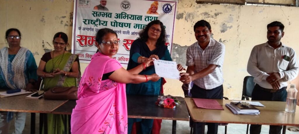 बेहतर कार्य करने के लिए आंगनबाड़ी कार्यकर्ता हुईं सम्मानित