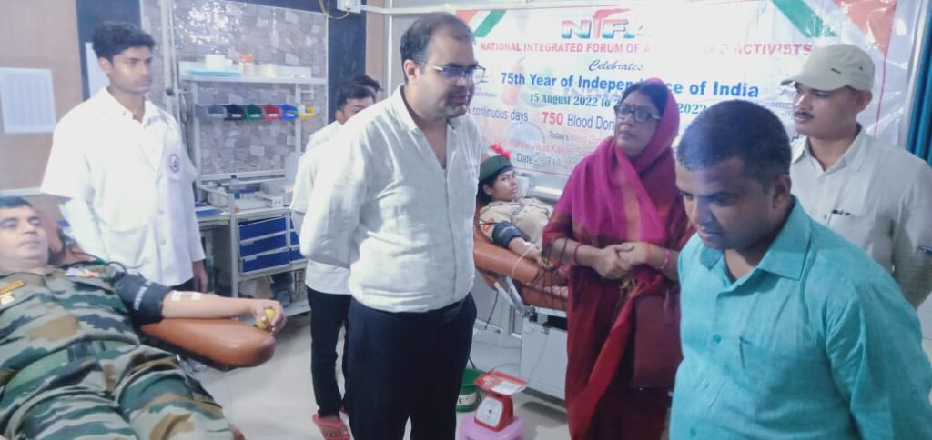 जौनपुर ठाकुरबाड़ी महिला विकास कल्याण समिति द्वारा निफा (नेशनल इंटिग्रेटेड फोरम ऑफ आर्टिस्ट एंड एक्टिविस्ट) के तहत आजादी के अमृत महोत्सव (15 अगस्त से 29 अक्टूबर) के उपलक्ष मे 07-10-2022 को रक्तदान शिविर का आयोजन आईएमए बिल्डिंग और जिला अस्पताल में किया गया।
