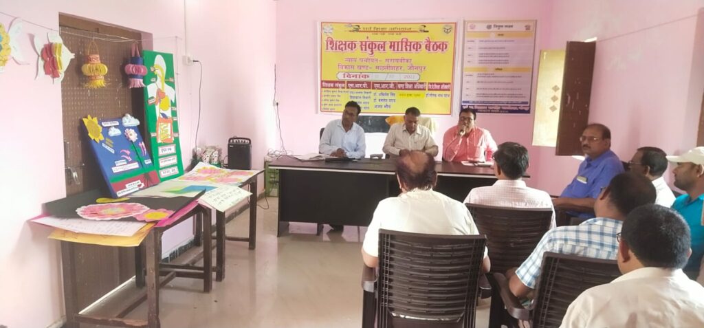 – मंगलवार को न्यायपंचायत सरायबीका संकुल बैठक जूनियर हाइस्कूल बटनहित में आयोजित की गई जिसमें बोलते हुए खंड शिक्षा अधिकारी बसंत शुक्ल ने कहा समर्पण भावना के साथ सभी मिलकर कार्य करे।सभी अध्यापक बच्चों के साथ जुड़कर कार्य करे।ARP डॉ संतोष तिवारी ने बताया कि क्लास 1से 3 तक के बच्चों में भाषा व गणित विषय मे शत प्रतिशत दक्षता आवश्यक हैजिसकी तरफ सरायबीका संकुल आगे बढ़ रहा है।छदान विद्यालय में क्लास 1 के बच्चों द्वारा निपुण लक्ष्य प्राप्त कर लेना बहुत ही सराहनीय है।डॉ तिवारी ने कहा जूनियर हाईस्कूल में विज्ञान व गणित में tlm का प्रयोग हमेशा किया जाय जिससे सीखने में आसानी होती है।नोडल संकुल शिक्षक अरविंद मिश्रा ने शिक्षक डॉयरी व शिक्षण योजना पर सभी अध्यापको से शपथ दिलवाया की हम ईमानदारी स्कूल में प्रतिदिन प्रयोग करेंगे।स्कूल कैंपस में लगे tlm मेले में सभी अध्यापको द्वारा अपना नवाचार प्रस्तुत किया गया।बैठक में संकुल प्रणवीर सिंह,धर्मेंद्र सिंह,कृष्ण कांत प्रजापति,विनोद कुमार,व प्रतिभा यादव,साधना सिंह,अभिलाषा,सरिता,सितारा देवी,रणजीत, रमाकांत,देवेश कुमार,रमेश यादव प्रधानाध्यापक उपस्थित रहे।