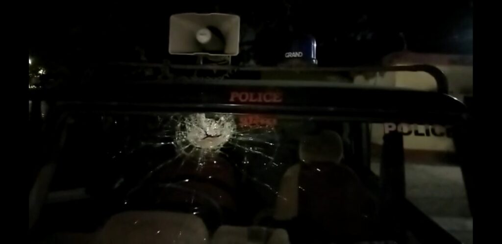पुलिस की गाड़ी पर भी पथराव, दो गाड़ियों के शीशे टूटे