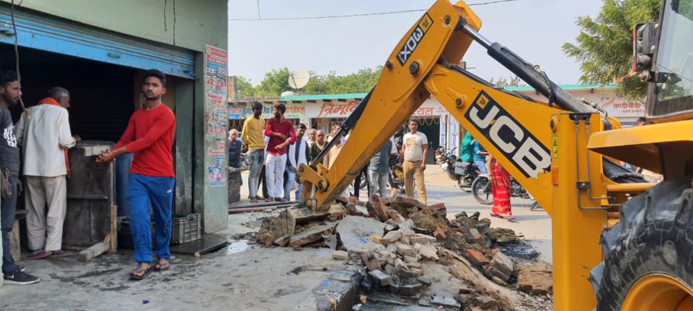 मालूम हो कि थानागद्दी बाजार में दुकानों और मकानों के सामने कुछ अतिक्रमणकारियों ने अवैध तरीके से अतिक्रमण कर रखा था। अवैध तरीके से दुकानों के सामने टीन शेड लगाकर व लकड़ी के तख्त डालकर रास्तों को संकरा कर दिया था। इसके चलते आवागमन में लोंगों को कठिनाई का सामना करना पड़ रहा था। बाजार से वाहन गुजरते समय जाम की स्थिति बन जाती है। बता दे कि अतिक्रमण की शिकायत लोगों ने कई बार जिलाधिकारी व अन्य अधिकारियों से की थी। इसे लेकर बाजार में पुलिस के साथ उपजिलाधिकारी द्वारा दो माह पूर्व अतिक्रमणकारियों को अतिक्रमण हटाने के लिए चेतावनी दी गई थी किन्तु कोई पालन नही किया । आज मंगलवार को जिलाधिकारी मनीष कुमार वर्मा के आदेश पर तहसीलदार अमित त्रिपाठी व पीडब्लूडी के सहायक अभियंता एहतेशामुल हक थानागद्दी चौकी प्रभारी रोहित कुमार मिश्र सहित पुलिस बल एवं प्रशासन कर्मचारियों के साथ बुलडोजर लेकर अतिक्रमण को हटाने के लिए पहुंचे।पूरे बाजार में अवैध अतिक्रमण पर बाबा का बुलडोजर जमकर गरजा । अवैध तरीके से लगी दीवार और टीन शेड को बुलडोजर से पूरी तरह ध्वस्त कर दिया गया। बुलडोजर द्वारा पुलिस प्रशासन की कार्रवाई को देख अतिक्रमणकारियों में हड़कंप मच गया। कुछ आक्रमणकारी अपने आप अपने अतिक्रमण के सामान को खोल कर ले जाते हुए नजर आए। वहीं, प्रशासनिक अधिकारियों द्वारा अवैध अतिक्रमण को लेकर चेतावनी दी गई। अतिक्रमण हटाने वाली टीम में पीडब्ल्यूडी जेई मंजूर आलम, कानूनगो शैलेन्द्र प्रताप सिंह, लेखपाल चंद्रजीत यादव, लेखपाल राजेश श्रीवास्तव, लेखपाल मनीष मौर्य, लेखपाल कमलेश यादव आदि रहे।