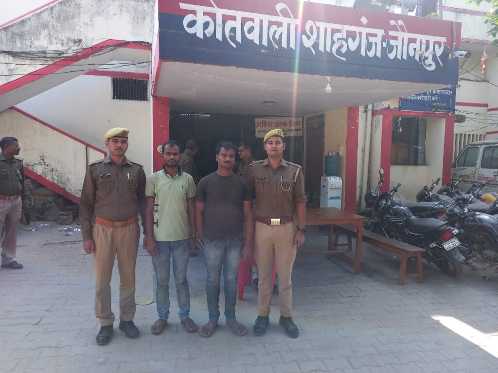 – वरिष्ठ पुलिस अधीक्षक जौनपुर द्वारा अपराधियों के विरूद्ध चलाये जा रहे अभियान के क्रम में अपर पुलिस अधीक्षक नगर जौनपुर के निर्देशन व क्षेत्राधिकारी शाहगंज व प्रभारी निरीक्षक शाहगंज के कुशल पर्यवेक्षण में दिनांक 12.11.2022 को थाना स्थानीय के उ0नि0 श्री प्रभुनाथ यादव एवं उ0नि0 श्री वरूणेन्द्र कुमार राय तथा हमराही कर्मचारीगण द्वारा मुखबीर से प्राप्त सूचना के आधार पर दबीश देकर दो अभियुक्तों 1. झिनक उर्फ मो0 आसीफ पुत्र स्व0 मोवीन निवासी ग्राम बडागांव थाना शाहगंज जिला जौनपुर 2. गुलाम असरफ पुत्र गयासुद्दीन निवासी रन्नो खां का पुरा जलालपुर थाना जलालपुर जिला अम्बेडकर नगर को गौसपुर नहर पुलिया थाना शाहगंज जनपद जौनपुर से 52 कि0ग्रा0 गो-मांस के साथ गिरफ्तार किया गया । बरामदगी व गिरफ्तारी के आधार पर थाना स्थानीय पर मु0अ0सं0 311/2022 धारा 3/5/8 गोवध निवारण अधिनियम थाना शाहगंज जनपद जौनपुर पंजीकृत करते हुए अभियुक्तो को माननीय न्यायालय भेजा गया ।