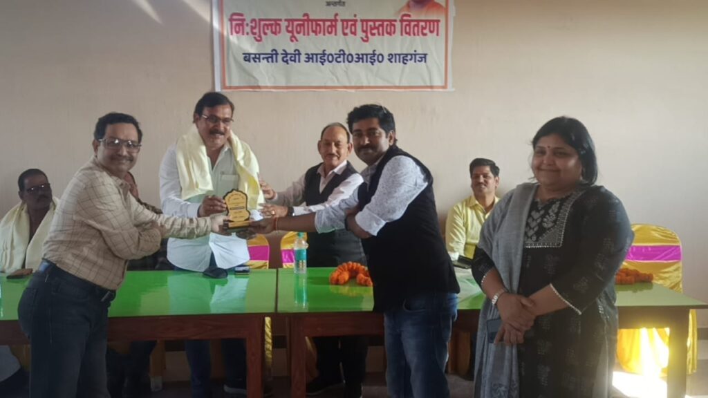 शाहगंज के पक्का पोखरा पश्चिमी कौड़िया स्थित बसंती देवी आईटीआई मैं निशुल्क यूनिफॉर्म पुस्तक वितरण का कार्यक्रम आयोजित किया गया जिसमें उत्तर प्रदेश कौशल विकास योजना के अंतर्गत बतौर मुख्य अतिथि ब्लॉक प्रमुख प्रतिनिधि विजय सिंह विद्यार्थी अपने कर कमलों द्वारा यूनिफॉर्म छात्र छात्राओं को वितरित किया। इसके पूर्व में मुख्य अतिथि ने मल्टीपरपज हाल का फीता काटकर उद्घाटन किया। इस अवसर पर उनका सहयोग ग्राम पंचायत कोरिया के प्रधान दुर्गा प्रसाद चौधरी, विनय सिंह डॉ राजकुमार मिश्रा डॉक्टर सुधाकर मिश्रा डॉ रुचि मिश्रा, जेसीआई शाहगंज शाहगंज सिटी अध्यक्ष आशीष जायसवाल भाजपा नेता साधु तिवारी भाजपा नेता भोला मिश्रा ने दिया। कार्यक्रम की शुरुआत मैं छात्रा प्रियंका, साक्षी, वंदना ने स्वागत गीत के साथ किया। इसके के पश्चात अतिथियों का स्वागत आईटीआई के उपाध्यक्ष हनुमान प्रसाद अग्रहरी ने दिया। इसके पश्चात माल्यार्पण के क्रम में जैसे पूर्व अध्यक्ष दीपक जायसवाल पूर्व अध्यक्ष रविंद्र दुबे आईटीआई बड़े बाबू नारायण मिश्रा सुशील तिवारी विकास जायसवाल राजेश यादव सुरेंद्र प्रजापति नरसिंह तिवारी सौरव प्रजापति दीपक सपना यादव अतिथियों का माल्यार्पण कर स्वागत किया इसके पश्चात छात्र छात्राओं को यूनिफॉर्म पुरस्कार वितरण मुख्य अतिथि ब्लॉक प्रमुख प्रतिनिधि विजय सिंह विद्यार्थी के कर कमलों द्वारा दिया गया। आपको बता दें बसंती देवी आईटीआई पासआउट छात्र संदीप नाग महाराष्ट्र में वेस्ट रेलवे में टेक्नीशियन ग्रेड 3 की परीक्षा पास करने की उपलब्धि पर देकर सम्मानित किया गया कार्यक्रम का संचालन भाजपा मंडल के पूर्व अध्यक्ष मनोज पाण्डेय व आभार प्रदर्शन बसंती देवी आईटीआई के डायरेक्टर दिवाकर मिश्रा ने किया। इस कार्यक्रम को सफल बनाने में छात्राओं में खुशबू रंजू साक्षी रंजना गौतम वंदना गौतम सोनाली मिश्रा प्रतिमा जायसवाल अमन कुमार विश्वकर्मा चंद्रभान इंद्रेश चौहान मोहम्मदपुर शुभम यादव आदि ने महत्वपूर्ण भूमिका निभाई।