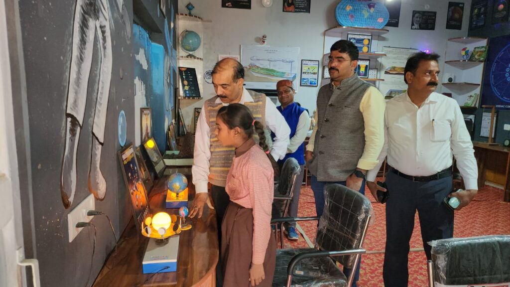इसके बाद उन्होंने विद्यालय में स्थापित डिस्कवरी लैब का निरीक्षण किया। डिस्कवरी लैब में विद्यालय के शिक्षक दिनेश यादव द्वारा 20 बच्चों को उपकरणों के बारे में जानकारी देते हुए पाया। इस दौरान उन्होंने बच्चों से कंकाल तंत्र, सूक्ष्मदर्शी, टेलेस्कोप, कंप्यूटर, दिन रात होना ग्लोब में विभिन्न देशों की स्थिति ज्वालामुखी, सौर मंडल व अन्य उपकरणों के बारे में जानकारी ली, जिसको बच्चों द्वारा बहुत अच्छे तरीके से बताया गया। प्राचार्य ने प्रधानाध्यापक अमित सिंह व विद्यालय के शिक्षकों की जमकर तारीफ करते हुए आगामी 30 नवंबर को नैट परीक्षा के लिए बच्चों की अच्छी तैयारी के लिए निर्देशित किया।