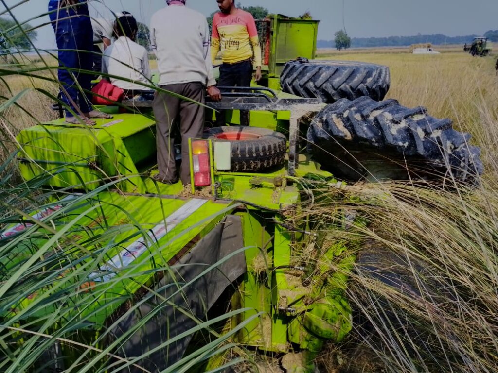 हार्वेस्टर पलटने की सूचना पर पहुंचे जज सिंह अन्ना ने देखा कि शासन द्वारा सड़क नहीं बनाए जाने के कारण गहरी खाई में पलटा हार्वेस्टर