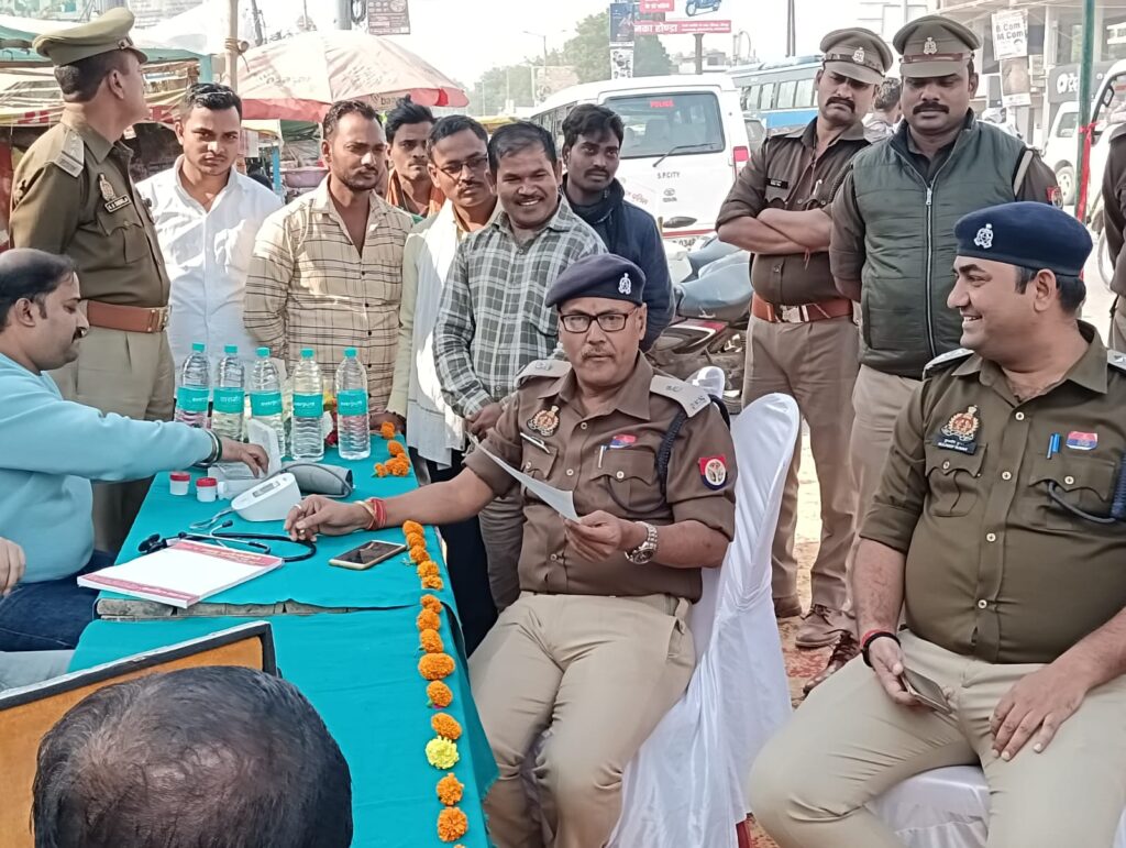 “यातायात माह नवम्बर” के तत्वाधान में वरिष्ठ पुलिस अधीक्षक जौनपुर के निर्देशन क्रम में स्वास्थ एवं नेत्र परीक्षण कैम्प का आयोजन वाजिदपुर तिराहे पर किया गया जिसका शुभारंभ मुख्य अतिथि अपर पुलिस अधीक्षक नगर श्री डा0 संजय के कर कमलों से किया गया जिसमे क्षेत्राधिकारी नगर / यातायात श्री कुलदीप कुमार गुप्ता, प्रभारी निरीक्षक यातायात श्री जी0 डी0 शुक्ला(आयोजन कर्ता) टी एस आई श्री शिवचंद यादव मौजूद रहे जिसमे 203 व्यक्तियों का स्वास्थ्य परीक्षण व 137 चालको का नेत्र परीक्षण सक्षम डॉक्टरों द्वारा सफलता पूर्वक किया गया तथा सुगम यातायात प्रबंधन हेतु यातायात नियमो का उलंघन करके वाहन चलाने वालो के विरुद्ध चालान की कार्यवाही की गयी, व इसके दुष्परिणाम से उनको अवगत कराया गया, तथा दोषी पाये जाने पर चालान की कार्यवाही की गयी व इसके प्रति प्रचार प्रसार कर वाहन चालको कों जागरूक किया गया तथा उन्हें यातायात नियमों के बारे में जागरूक किया गया, तथा यातायात नियमों के बारे में सभी उपस्थित व कैम्प में प्रतिभागियों को अपने परिवार, गांव समाज के लोगों को जागरूक करने हेतु सबसे अपील किया गया । तथा आज दिनांक 25.11.2022 को जनपद पुलिस/यातायात पुलिस द्वारा यातायात नियमों का उल्लघंन करने वाले वाहन चालको के विरुद्ध कुल 307 चालान व 3,23,500/- रुपये शमन शुल्क की कार्यवाही की गयी । सोशल मीडिया सेल