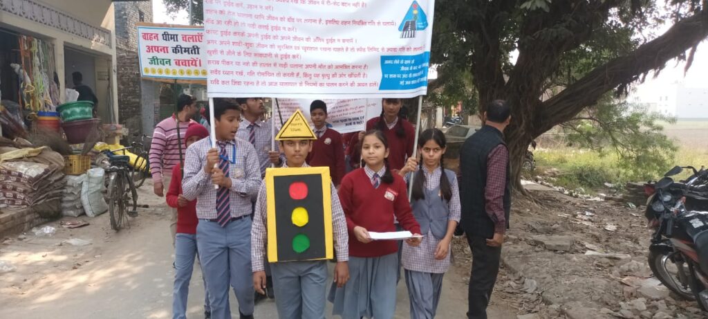क्षेत्राधिकारी केराकत के नेतृत्व में ओमेगा पब्लिक स्कूल में निकाली गई सड़क सुरक्षा जागरूकता रैली