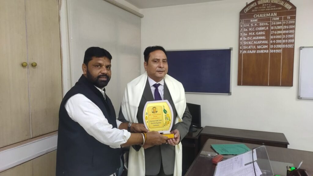 सीजीआरएफ चेयरमैन को स्मृति चिन्ह एवं शाल भेंट की
