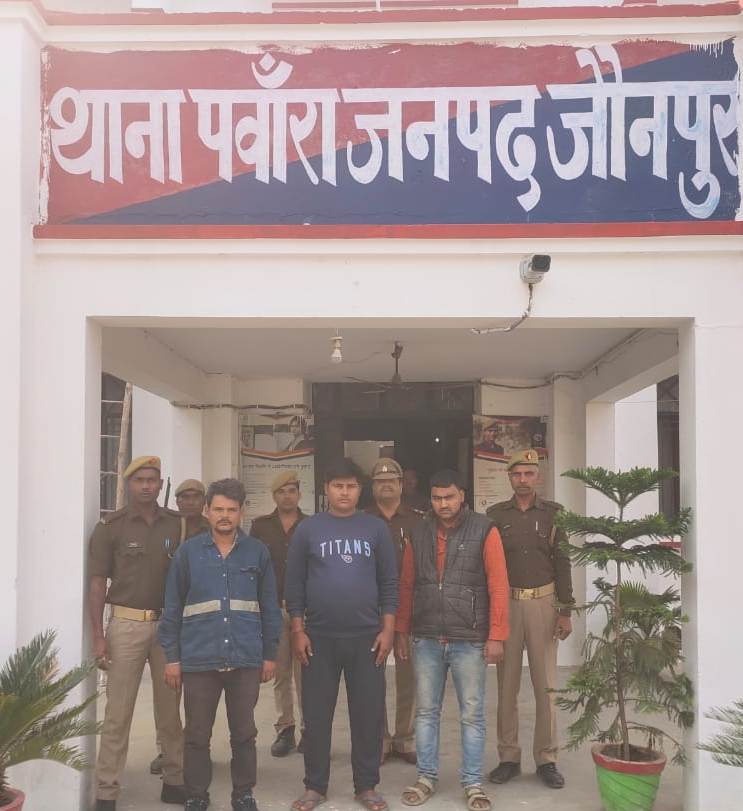 अजय साहनी वरिष्ठ पुलिस अधीक्षक जौनपुर के निर्देशन में अपराध व अपराधियो के विरुद्ध चलाये जा रहे सघन अभियान के क्रम में अपर पुलिस अधीक्षक ग्रामीण जौनपुर के दिशा निर्देशन एवं क्षेत्राधिकारी मछलीशहर जौनपुर के कुशल पर्यवेक्षण में थानाध्यक्ष राजनरायन चौरसिया थाना पवारा जौनपुर मय हमराह पुलिस टीम के चेकिंग सदिग्ध व्यक्ति/वाहन कि चेकिंग के दौरान बधवा तिराहे के पास से एक पिकप वाहन सं0 UP62CT1277 में तीन राशि गाय, एक बछिया, एक बछड़ा कुल 05 राशि गोवंश को रस्सी से निर्देयता पूर्वक बांध कर गोकंशी हेतु ला जाते अभियुक्तगण 1. प्रदीप यादव पुत्र ओम प्रकाश यादव निवासी उटरुकला थाना बक्शा जनपद जौनपुर, 2. अमित सिंह पुत्र महेन्द्र प्रताप सिंह निवासी उटरुकला थाना बक्शा जनपद जौनपुर, 3. आशीष मिश्रा पुत्र इच्छा राम मिश्रा निवासी चित्तौड़ी थाना तेजीबाजार जनपद जौनपुर को आज दिनांक 30.11.22 को समय करीब 02.20 बजे गिरफ्तार किया गया। गिरफ्तारी/बरामदगी के आधार पर अभियुक्तों के विरुद्ध मु0अ0सं0 127/2022 धारा 3/5A/8 गोवध निवारण अधि0 व 11 पशु क्रूरता अधि0 पंजीकृत कर विधिक कार्यवाही की जा रही है।