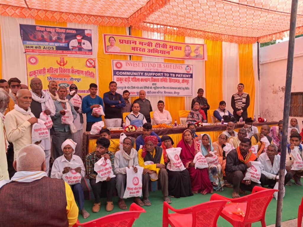 जौनपुर, 30 नवम्बर 2022 । राष्ट्रीय क्षय उन्मूलन कार्यक्रम (एनटीईपी) के तहत ठाकुरबाड़ी महिला विकास कल्याण समिति के गौरीशंकर मंदिर सिंगरामऊ स्थित कार्यालय पर 105 क्षय रोगियों को पोषण किट प्रदान की गयी । कार्यक्रम के मुख्य अतिथि अपर मुख्य चिकित्सा अधिकारी (एसीएमओ) डॉ एसके जायसवाल ने दीप प्रज्ज्वलित कर कार्यक्रम का शुभारम्भ किया ।