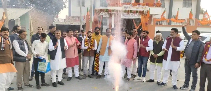गुजरात विधानसभा के चुनाव की जीत का जश्न भाजपा कार्यालय पर जिलाध्यक्ष पुष्पराज सिंह की अध्यक्षता में मनाया गया
