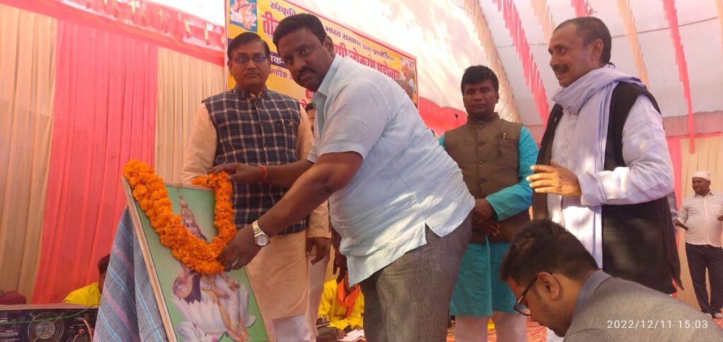 मंचासीन मुख्य अतिथि व विशिष्ट अतिथियों का माल्यार्पण कर भव्य स्वागत किया गया। कार्यक्रम के विशिष्ट अतिथि ब्लॉक प्रमुख प्रतिनिधि डॉ उमेश चंद्र तिवारी गुरुजी ने बताया कि भारतीय संस्कृति और वैदिक सनातन परंपरा को अक्षुण्ण रखने के उद्देश्य से सरकार का यह सार्थक एवं ठोस कदम है जिसकी जितनी भी सराहना की जाए कम है। उन्होंने कहा कि हमारी पीढ़ियों को पूर्वजों द्वारा सौंपी गई संस्कृति और सभ्यता तथा संस्कार रूपी इस धरोहर को संभाल कर रखना चाहिए। विशिष्ट अतिथि के रूप में बोलते हुए अशोक कुमार बनर्जी पूर्व संयुक्त निदेशक सूचना एवं जनसंपर्क विभाग लखनऊ ने कहा कि अपने 37 वर्ष के कार्यकाल के दौरान चरित्र को संवारने और भारतीय संस्कृत की परंपरा को जोड़ने वाला ऐसा अद्भुत कार्यक्रम हमने कभी नहीं देखा।