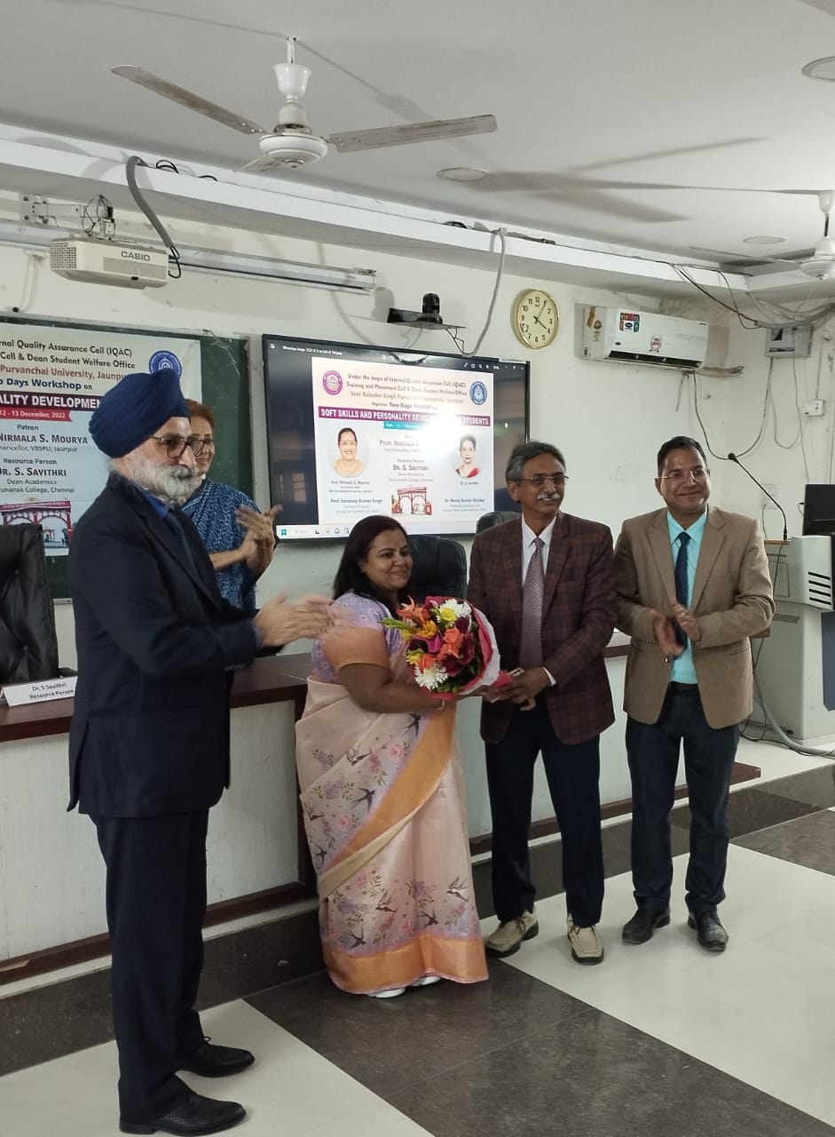 जौनपुर। वीर बहादुर सिंह विश्वविद्यालय के प्लेसमेंट सेल और छात्र अधिष्ठाता कल्याण विभाग द्वारा आयोजित दो दिवसीय कार्यशाला के दूसरे दिन मंगलवार को बच्चों को सॉफ्ट स्किल पर्सनालिटी डेवलपमेंट विषय से रूबरू कराया।